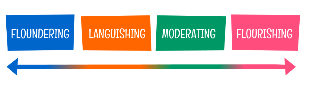 Languishing – This is the state where we feel minimal positive emotions and may even feel like we are “stuck in a rut” or have a sense of emptiness, stagnation and feel we lack vitality. It is important to be aware that this state could put us in a significant risk factor of developing a mental illness in the future if we don’t manage it.